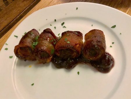Dates are one of my favorite small plate menu items and theirs were great. The spice of chorizo inside the sugary date and the saltiness of the bacon wrapping the date made for a delicious sweet and savory bite.