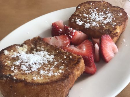 One of the specials listed was grilled pound cake with fresh strawberries ($2.50). Grilled or seared pound cake is a dessert we’ve seen on fine dining menus lately, mostly for about triple the price of Linda’s, so we had to have it. I hope it goes on the permanent menu because it was darn good. It was actually the best grilled pound cake we have had, including the iterations at fine dining establishments. It was warm and sweet with a sprinkling of powdered sugar on top, with fresh ripe strawberries.