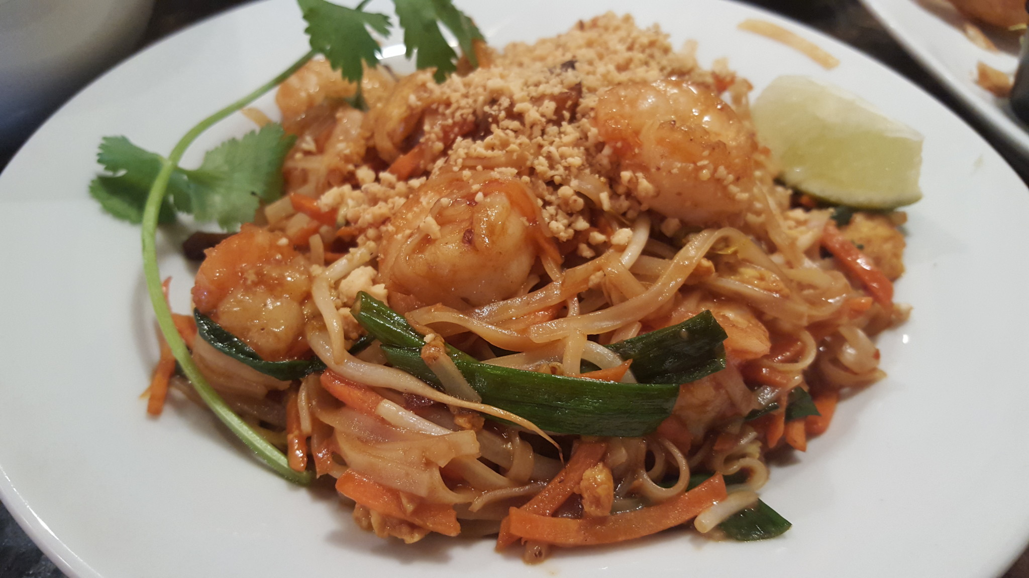 Pad Thai ($8.95 + shrimp $1.25, main menu): Mama Fu’s takes classic pad thai to a new level. Their pad thai is tossed with bean sprouts, carrots, scallions, egg, and rice noodles and also filled with savory tofu slices. The tofu is some of the most tender and flavorful tofu I’ve had in recent memory. Marinating tofu can be a tricky process to hold flavor in, but they do it very well at Mama Fu’s. We added shrimp to ours and the shrimp and tofu paired extremely well together. The shrimp were clearly fresh and cooked immaculately. I have a pet peeve on overcooked shrimp since we live on the coast and there was no problem with that in this dish. This simple, classic entree is a great choice for anyone new to Mama Fu’s or for anyone looking for a great vegan or vegetarian dish.