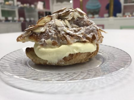 -Stuffed Almond Croissant: Almond lovers, this is for you. Teresa takes a croissant, slices it, glazes it, carmelizes it, tops it with sliced almonds, and fills it with a light whipped filling. It looks like a decadent dessert sandwich. You can eat it with your hands or a fork and knife- we won’t judge.