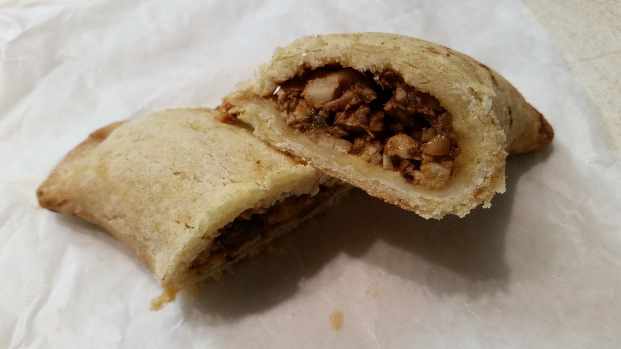 When it was time to order, it was like an out of body experience as my sweet tooth decided to jump out of my mouth and order for me. It ordered two Cinnamon rolls, a pecan roll, and a wedge of hummingbird cake. When I finally came to and realized what I had, I figured I should balance things out and ordered a veggie empanada. You know, it’s like ordering a Diet Coke with the Big Mac value meal. It evens things out and cancels out calories. That’s how it works, right? I got my items to go and headed for the house. It was a long drive as the smell of freshly baked items wafted through the car. Since it was around lunchtime, I decided to do what my mama taught me and eat the Veggie Empanada first.