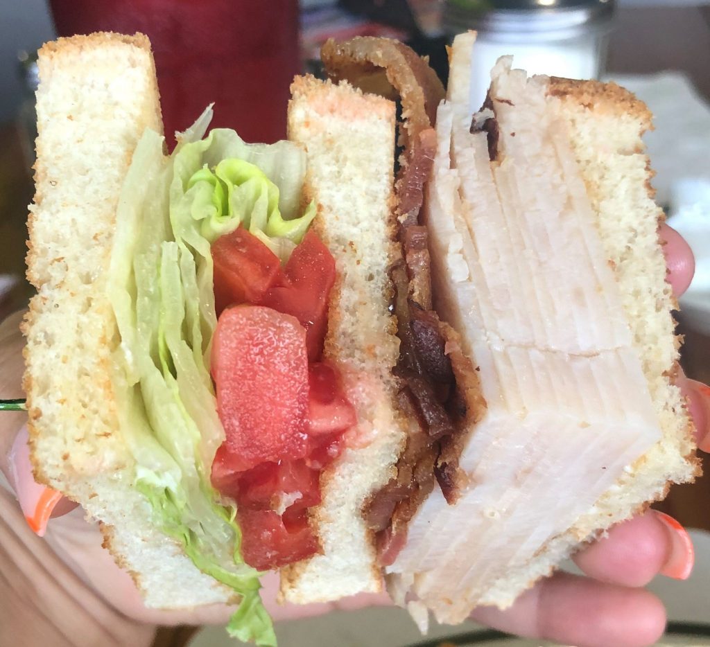By this point, I’m sure you know that I was on the verge of having to be wheeled out of there, but I stuck it out for you guys! The Turkey and Bacon Club was an excellent representation of a standard club sandwich — gobs of turkey meat, enough bacon, fresh lettuce and tomatoes and mayo all on nicely toasted bread. The portion was ridiculous and as always, clubs should be kinda hard to get in your mouth but worth scraping your gums a tad to get it going. I survived and ate the rest of it later that day! They also serve up a traditional club with ham.