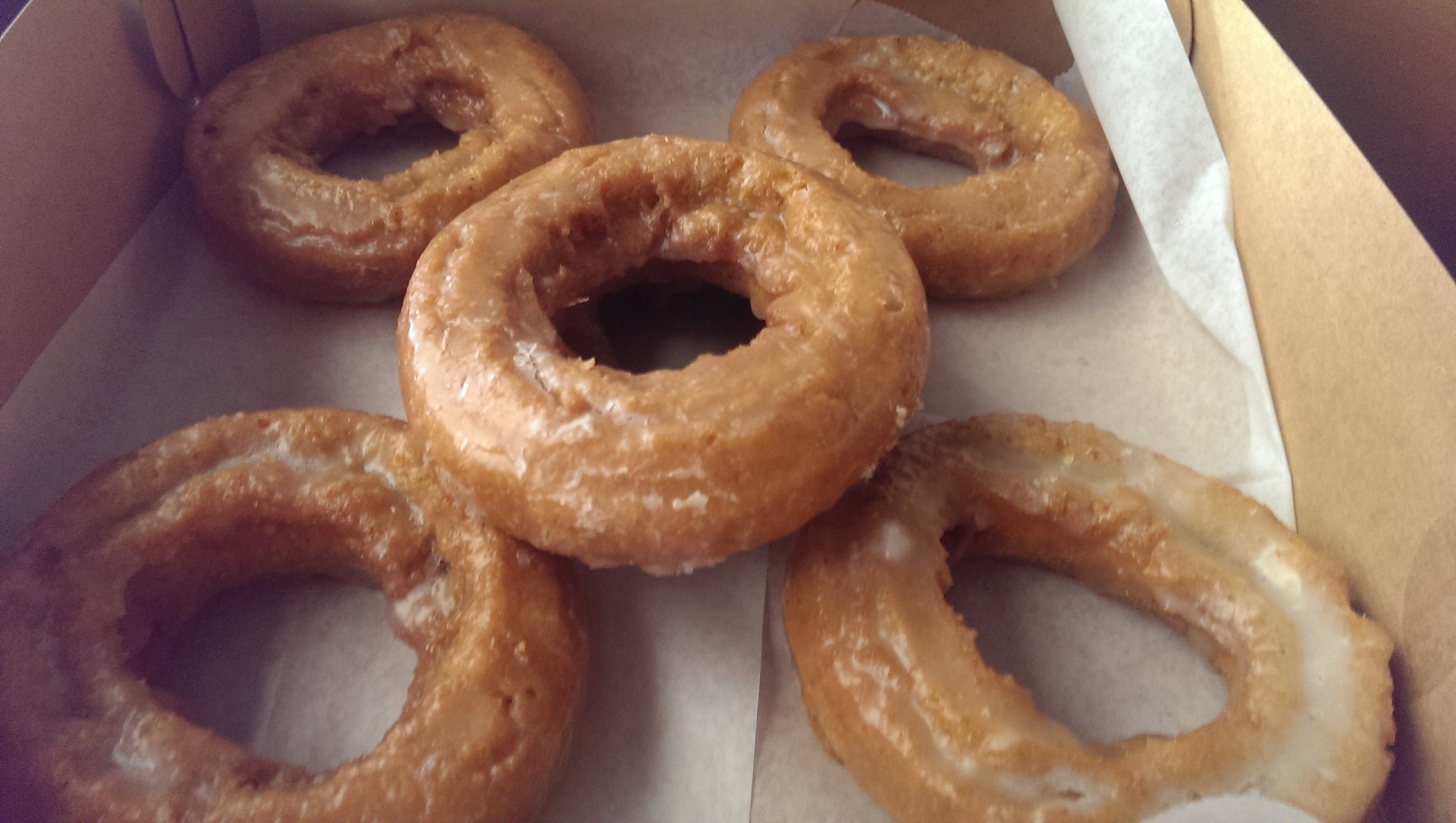 On this visit, we sampled their pumpkin spice donuts, chocolate glazed donuts, original glazed donuts, and their coconut cake. I called to order all these items the day before I was going to pick them up. This is the advisable thing to do for pumpkin spice donuts unless you are going very, very early in the morning. I think one of the most wonderful things about Cinotti’s is the whole atmosphere of the bakery. When I walked in, I was immediately greeted by several members of the staff even though they were involved completing other orders. I could tell it wasn’t a required “WELCOME TO CINOTTI’S!” like you get at some restaurants. This was just a genuine greeting from people who were happy to have another person come into the bakery. It also always smells divine in there. If you walk in and you’re over taken with hunger, they do serve sandwiches for breakfast and lunch and they’re inexpensive and very good. Once I got to the counter, a staff member double checked all my items and secured the packaging for me so the valuable donuts were safe on the drive. I barely made it back to work without breaking into the pumpkin spice donuts because my whole car smelled like the spices in the donuts.