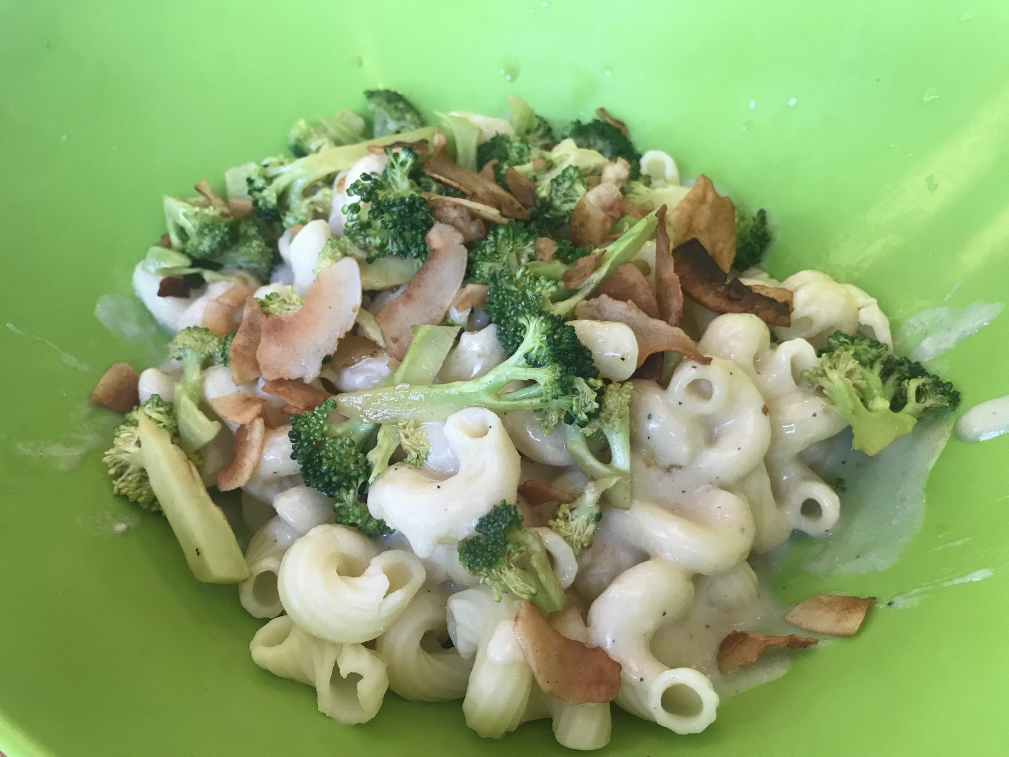 We shared scallion pancakes ($3.99), housemade golden dumplings (3 pieces, $4.99), vegan mac and cheese ($11.50), and a Leaf and Bean rice bowl ($11.50). The pancakes came cut into triangles with a dollop of aioli for dipping. Scallion pancakes are somewhat of a standard in Chinese cuisine, but they didn’t make the cut on your typical American-Chinese menu. They are a light and delicious appetizer that should get way more love, and Leaf and Bean’s are just as yummy as I’d hoped. The housemade golden dumplings were nice and crisp and browned on the outside with enough filling to last the couple of bites it will take to eat the whole thing. We chose chicken for our filling, but tofu and mushroom are also available to keep this dish vegan if you so choose.
