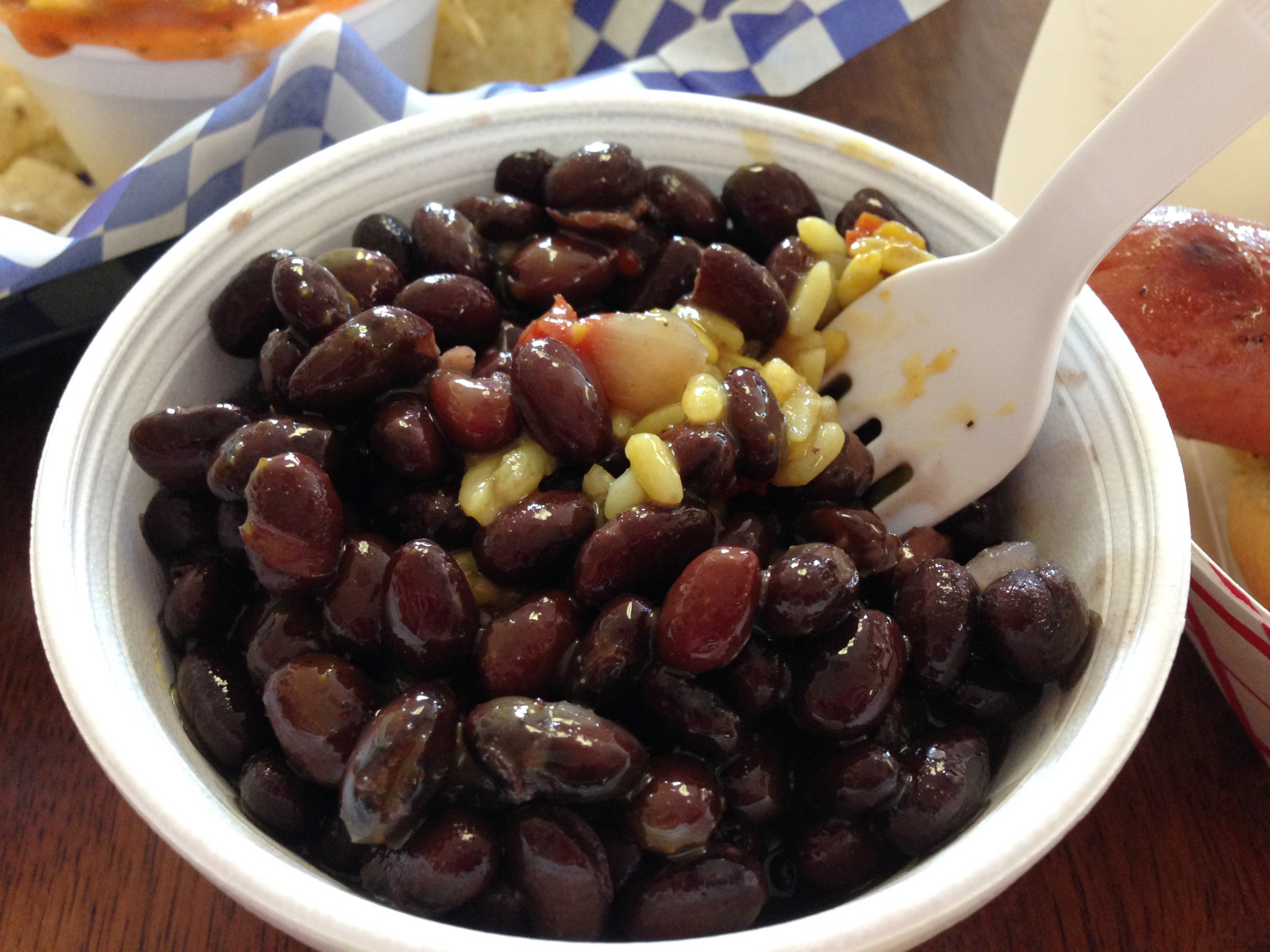 For the kids, we ordered a hot dog ($3.25), which came with a choice of prepackaged chips. And I really wanted to try the Crabcake Sandwich ($8.50), which came with a side of tortilla chips and housemade mango salsa. My salsa options were sweet or spicy, so I went with sweet. I also ordered a side of black beans and rice ($2.00). I am a huge fan of black beans and rice and always love to try different versions of the dish at different places. It amazes me how something so simple can be spun in so many different ways.