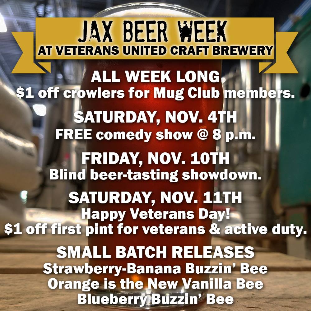 Jax Beer Week VeteransEvents Published November 3, 2017 at 1000 × 1000 in Drink Up- It’s Jax Beer Week! ← Previous