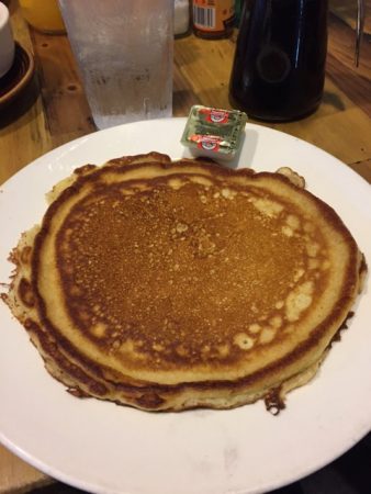 But because of the monster I am in the morning, I got a pancake as well. The hash had turned into an even more wonderful choice because it typically comes with a side of bread, but I was told I could upgrade to pancakes. I am still a little ashamed at the ridiculous amount of joy that information brought me and of the look of child-like wonder and joy that burst across my face (Sidenote from Brittny, he truly was more excited than I’ve ever seen him), but I am not ashamed of destroying that pancake like Jason Myers destroying the dreams of Jags fans. Honestly, everyone kind of has the idea that you can’t screw up pancakes. But holy crap guys, this was a good pancake. Like, just overall quality. If loading your body full of carbs is wrong, than I don’t want to be right. I also want another stack of those pancakes right now… (Evan)