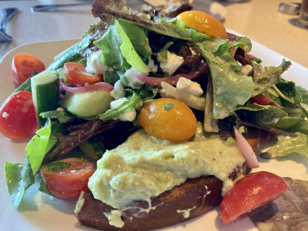 - Avocado Toast Salad – On the lighter side of the menu there’s the Avocado Toast Salad. It’s a Millennial’s dream come true. Toasted brioche with smashed avocados topped with a salad of spring greens, ripe cherry tomatoes, pickled red onions, cucumber, feta cheese, and drizzled with a cilantro lime vinaigrette. This was a delicious salad. It’s bright and acidic which cuts perfectly with the rich fatty avocado. The cilantro lime vinaigrette was refreshing. If the rest of the brunch options seem a little too heavy for you, this salad is a great alternative.