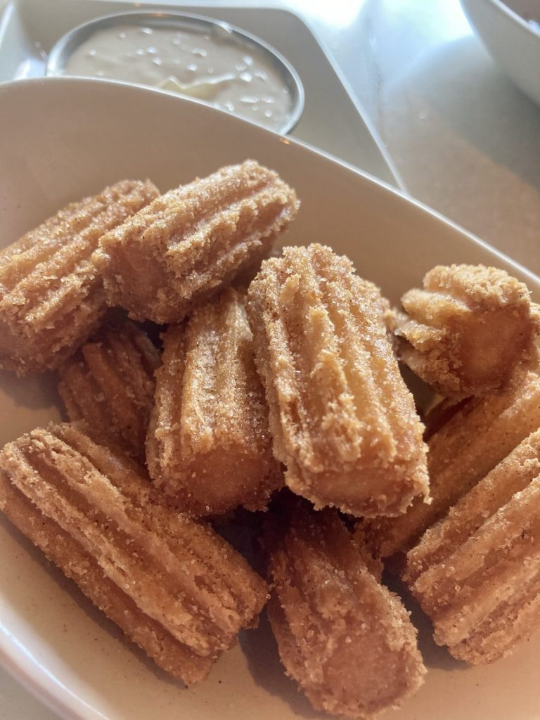 - Churro Bites – These Churro Bites are bite-size versions of the deep-fried favorite tossed with cinnamon and sugar and served with a vanilla yogurt dipping sauce. These sweet morsels were covered from end to end in cinnamon and sugar and wonderfully sweet. The yogurt dipping sauce added a nice tartness that made these bites even more addicting.