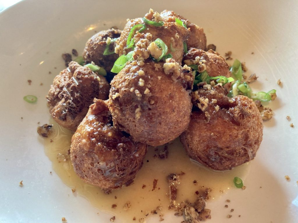 - Goat Cheese Fritters – served with a honey chili glaze and crushed pecans. Most restaurant fritters tend to go heavy on the breading so you only end up with just a hint of whatever the fritter is supposed to be. Not these. The goat cheese is front and center with its tangy creamy goodness. The honey chili glaze is a nice counterpoint. If you’re a fan of goat cheese, like me, you’ll love these fritters.
