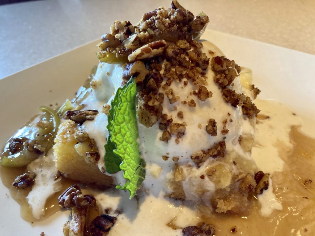 - Ooey Gooey Apple Cake – This isn’t officially on the brunch menu, but it is on their “Featured” menu. Firebirds offer a different seasonal “Ooey Gooey Cake” throughout the year. For the fall season, it’s the Ooey Gooey Apple Cake. It’s served a la mode with vanilla ice cream, roasted apples, and crushed pecans. The cake is dense, delicious, and sticky.