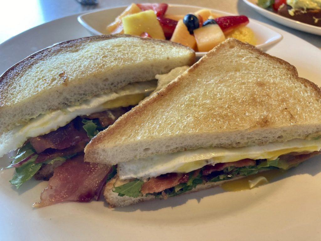 - Bacon & Egg Brioche – Another lighter choice for brunch, this dressed up version of a BEC is made with toasted brioche and red pepper mayo, spring mix, tomato, avocado, applewood smoked bacon and fried eggs and choice of side. This one came with roasted potatoes. I love brioche bread. It’s a little sweet, a lot buttery, and perfect for this sandwich. For egg sandwiches, I like my eggs cooked just a smidge past over easy. Still runny enough to give a sandwich some moisture, but not so runny that it’s a complete mess. This egg was cooked exactly like that, and I didn’t even have to ask for it.