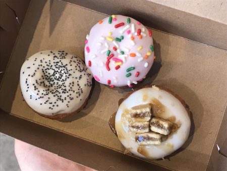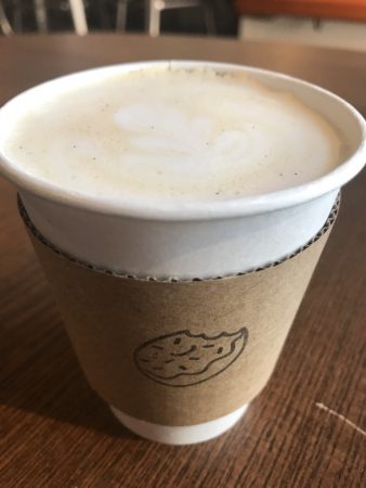 In addition to our donuts we had a vanilla latte. Actually, we asked for a decaf vanilla latte due to personal caffeine restrictions and were offered a coffee and steamed milk concoction because The Mini Bar doesn’t have decaf espresso. When I walked up to the bar to get it the barista told me that the little black specks on top were from vanilla beans because they make all their own syrups in house. She just wanted me to know it wasn’t coffee grounds. The drink we were given hit the spot. It was both pretty and delicious, plus it was nice that they made a drink that would work for me.