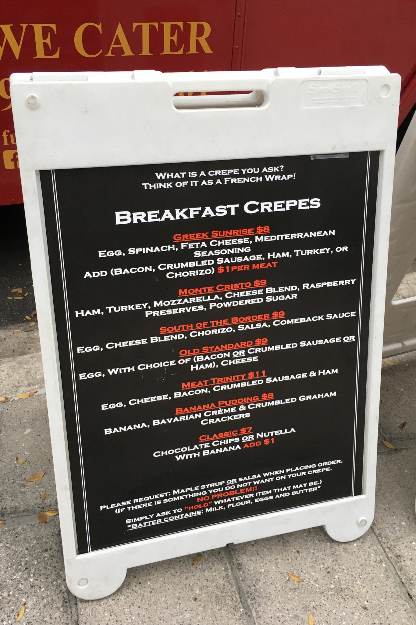 If there’s one thing I love, it’s breakfast. If there are two things I love, it’s crepes. And a third thing? Food trucks. Weird combo, I know, but just hear me out. When I can get those three things all rolled into one, it is officially a great day. Luckily for me, the plaza where my office is located hosts a regular rotation of some seriously yummy food truck options, and one of my favorites happens to be Full of Crepe. They are typically around on Thursdays for breakfast and sometimes even stick around for lunch too. Crepes all day?? Yes, please! Full of Crepe has quickly become one of my favorite food trucks and I frequent their truck often.