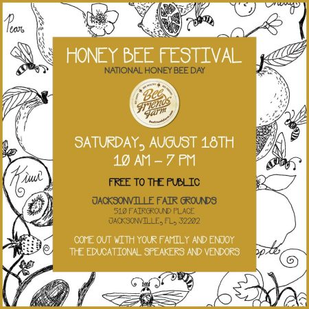 National Honey Bee Day is August 18th, and Bee Friends Farm is celebrating with Jacksonville’s first ever Honey Bee Festival 10 AM to 7 PM at the Jacksonville Fairgrounds.