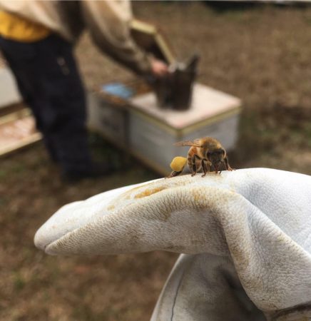 Bee with pollen, Photo Courtesy of Bee Friends Farm
