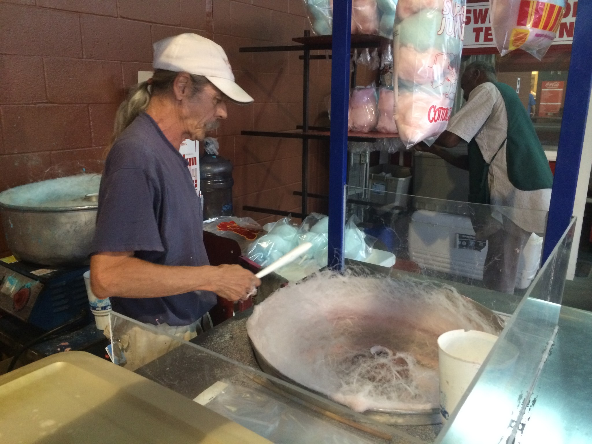 I’m convinced that quote suns up how Jamie and many of the other folks who work for the Suns feel about their jobs. We met up with Jamie half an hour before the first pitch and he began taking me for the grand tour of the ball park. We started by walking through the kitchen and prep areas. While the ball park foods team was cooking up a few last minute burgers we noticed that much of the heavy lifting appeared to be done in advance. The Suns have a large prep kitchen beneath the stands where much of the cooking is done prior to the food being sent out. We walked through and chatted with the staff as Jamie put out small fires along the way. There was nothing major and he took the little issues in stride. We continued up through the different concession stands throughout the ball park. All along the way he introduced me to the people who make you’re gameday experience something special throughout Bragan Field. Everyone seemed to know him and he seemed to know everyone. I don’t mean he knew their name. He really knew them. He introduced me to Miss Katie Davis, a sweet older woman in her 80’s who for virtually anyone I know would conjure up wonderful memories of their grandmother. Jamie shared with me how Miss Katie runs the right field concession area and has worked with the Suns for more than 10 years. He also took time to boast on her behalf that she’s Godmother to NFL hall of gamer bullet Bob Hayes. This elicited a wonderful smile on Miss Katie’s face that could melt an Eskimo. As we continued through the ball park Jamie introduced me to Richard the cotton candy man. Richard spent 20 years spinning cotton candy for Barnum and Bailey’s circus. He’s been spinning for the Suns for another 10. With one cotton candy wheel in front and one behind Richard effortlessly spun one perfect cotton candy after another as we stood and chatted with him about his years on the job. He spun in front then back front then back never missing a beat as we chatted. When I asked what he liked best about his job, Richard’s face lit up with an ear to ear smile as he shared with me that after all these years it still makes his day to see the children smile as he hands them their cotton candy. Jamie recollected how for years the Suns had hired people in house to make cotton candy which tended to result in more mess than success. Jamie and Richard met in passing at a supplier’s office. They hit it off and Richard’s been the cotton candy man for the Suns ever since. Richard’s hiring story embodies who the Suns are as an organization and as Jamie puts it “as a family”. They work hard to put the right people in the right places. They create a family atmosphere which in my time spent with the folks at the Suns I saw time and time again. We walked up into the Sundowner lounge on the third floor of the ball park. Jamie then introduced me to a Suns season ticket holder he knows who was having a drink at the bar. Jamie asks what he’s drinking. The guy who’s clearly having a beer tells he’s having a coke. Jamie says,”Looks like Yuengling to me!” The guy laughs and says only because they don’t have Sam Adams. Jamie says, “We can get you  Sam Adams. You’ll drink it in a bottle right?” “Yep.” “Okay we’ll order it.” What ball club changes the beer selection on request because a long time supporters simply asks for it. I doubt many others would. This though is what makes the Suns special. If you walk into the Bragan’s(Suns owners) ball park they’re team will treat you as if you’re at home. After leaving the Sundowner lounge we headed down the 3rd base line for the outfield to see if we could meet a couple of the “Hawkers”. Hawker is shop talk for someone walking with through the stands selling. These are the individuals who walk through the aisles toting a large tray full of beer enticing you to have a cold one. I learned the Hawkers are commission based salesman who make $.50 for every item they sell. Unsurprisingly these guys were very focused so we didn’t get much time to chat with them. We were nearly there already so we walked down to see the “European Street” beer garden. Since we were there on a Tuesday the beer garden wasn’t open(It’s open ThursdaySaturday). The thing that stood out to me about that area was how incredibly close to the field you were. On a weekend you can grab a beer, climb down the grassy steps, and sit within spitting distance of the Suns pitchers in the bullpen. You could easily reach out and give them a high five after a home run(caution: this may be against the rules). If you haven’t ever ventured down the 3rd baseline before definitely make it a point to walk down there some time. As we walked back up towards home plate Jamie began to tell me about Jimmy the Philly Cheesesteak man. If you’ve read our previous interview with Jamie you know that prior to working with the Suns he worked for the Jags. While he was there Jimmy started working for them. When Jamie met him he was living out of his car. He worked constantly putting in every hour he could possibly get to save up and bring his family to Jacksonville. Jimmy worked hard, built himself up and eventually opened Colonel Mustard’s fabulous phat burgers. He’s been pretty darn successful ever since. Next time your at the Suns definitely try a philly. The man makes a mean Philly cheesesteak.