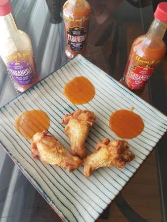 I like it pretty hot, so when Tabanero Hot Sauces offered to send us a package of their three most popular sauces to taste test, I happily volunteered as tribute. Tabanero began in 2004 by seeking out a place where rainfall was plentiful enough to grow their peppers. In 2007 a massive flood wiped out the region of Tabasco, Mexico, and instead of moving production elsewhere, the team at Tabanero helped rebuild the area and prepare it for harvest again. They still donate a portion of their sales to a church in the region as an ongoing dedication to giving back and helping the community that helps them. How awesome is that?! All Tabanero sauces are gluten free and not vinegar based, which allows for the pure taste of the peppers to shine through. I opted to taste test the sauces with some Publix chicken wings and then cook a recipe provided to me by Tabanero for one of their sauces.