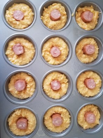 Sweet and Spicy Corn Dog Muffins- into the muffin pan