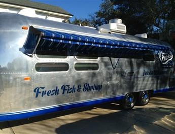 We decided that this was the look we wanted if we were going to get in this business, we wanted the truck to be a representation of our personalities as well as the foods. We know that it was built in 1971 and it was used as a normal Airstream trailer thru the 90’s. It sat under some tree’s for 10 years before being purchased by French Chef Pinoir in St. Augustine in 2009 where he built the beginning of a Food Truck but never really finished it. We then purchased it from him in January 2014 in St Augustine and What’s the Catch was born.