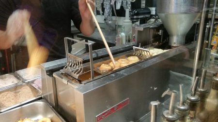 Doghnuttery is in a tiny corner shop in Chelsea Market. They make tiny cake doughnuts in a tiny fryer conveyor machine. Tiny is their shtick. It’s like if you took a Krispy Kreme store and put it in a shoebox. Doughnuttery specializes in gourmet sugars that are tossed with the freshly fried teeny tiny doughnuts. I tried the PB&J with peanut butter and grape flavored sugar and the Purple Pig with maple, purple potatoes, and bacon flavored sugar. They were tasty. The sugars tasted like a very light version of what they were supposed to portray. More like sugar with a hint of the listed flavor.