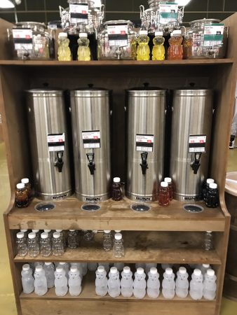 Another area of the store that natural-minded shoppers are sure to celebrate is the Apothecary. Lucky’s carries a variety of natural bath, body, and health products. Some are packaged and some are available in bulk at the wellness bar. The wellness bar has things like turmeric root, spinach powder, and hibiscus to concoct your own product blends with. They also have essential oil diffusers operating. There is much to see and explore in the Apothecary.