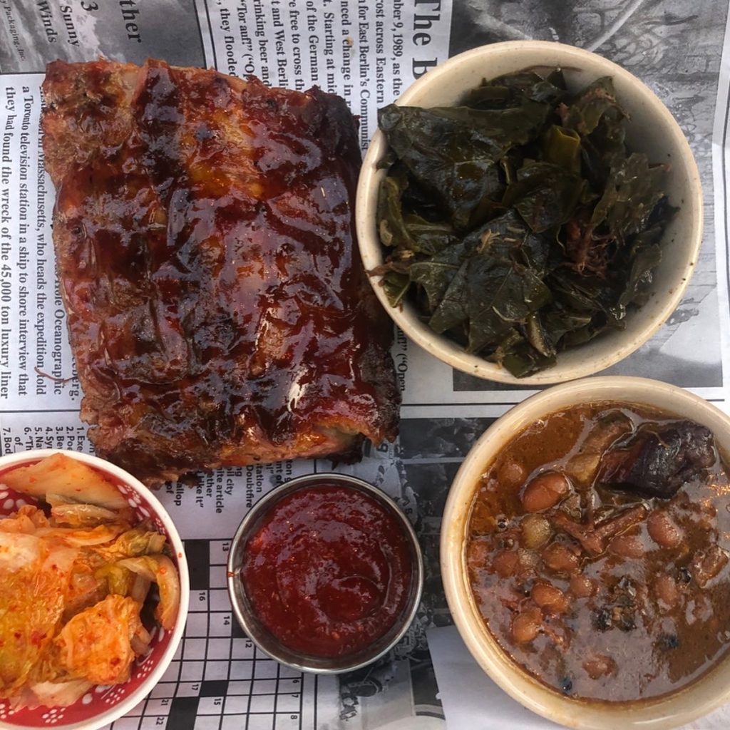 As for the sides, the collard greens for me were lacking in flavor and a little bland. I think it could use a bit more seasoning and vinegar to give it that classic taste. I would probably try a different side next time. On the other hand, the kimchi was amazing. The flavor profile was spot-on — tangy, sour, slightly hot, and 100% addicting. The baked beans were enjoyable. No major wow’s or complaints there.