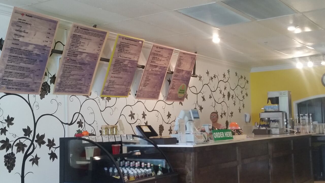 After being seated, we looked through the menu. The menu has a good variety of salads, sandwiches, sweet and savory crepes, fresh fruit smoothies, coffees, and desserts. Bonus thing you should know: the owner told me their Tres Leche cake is homemade from a family recipe from her home country of El Salvador. We decided to go with a couple of sandwiches and smoothies. Tropical Fruitland runs a great combo deal for lunch: buy any salad or sandwich and get a smoothie for only $3.00. A side is also included. Smoothies normally run $5.50 to $7.00 so I thought that was a great deal. My dining partner and I both got the combo deal and spent only about $22 after a tip, so not too shabby on the pocketbook.