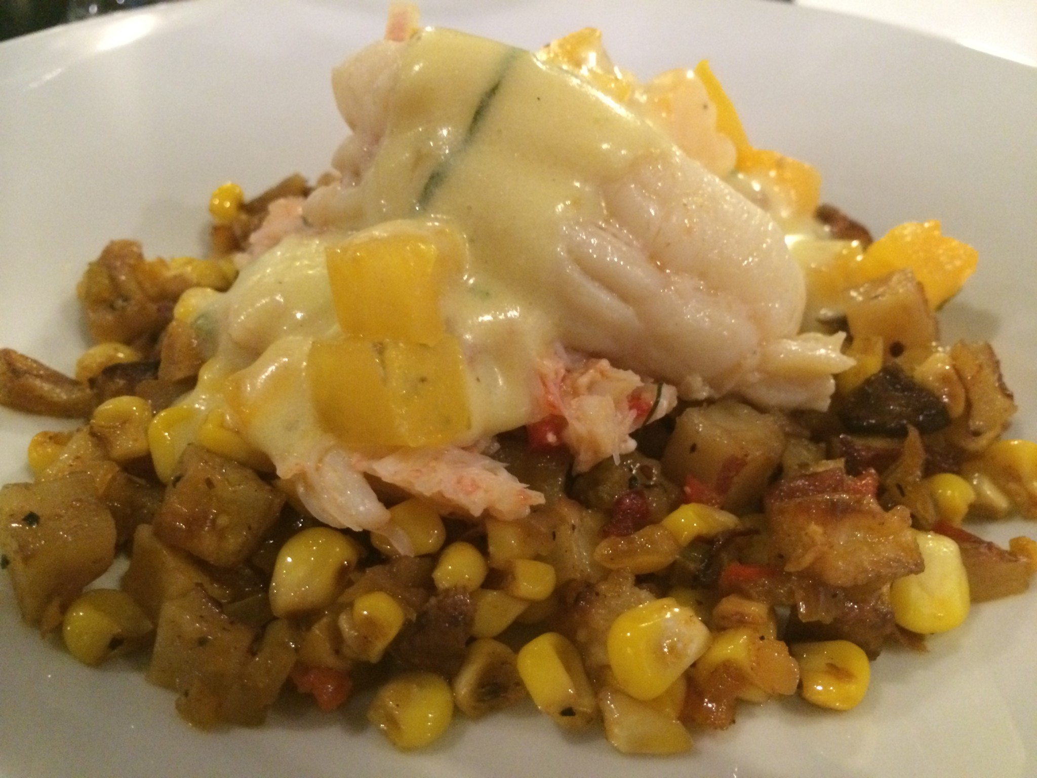 The 4th course of the meal was Maine lobster ragout with sweet corn potato hash, golden tomato relish, Champagne hollandaise. Lobster is always a treat. As with every other dish we were served all of the flavors matched beautifully. The lobster was delicious. The champagne hollandaise added fullness of flavor. The corn added some needed sweetness and the potato hash provided a nice base that showcased all of the other flavors.
