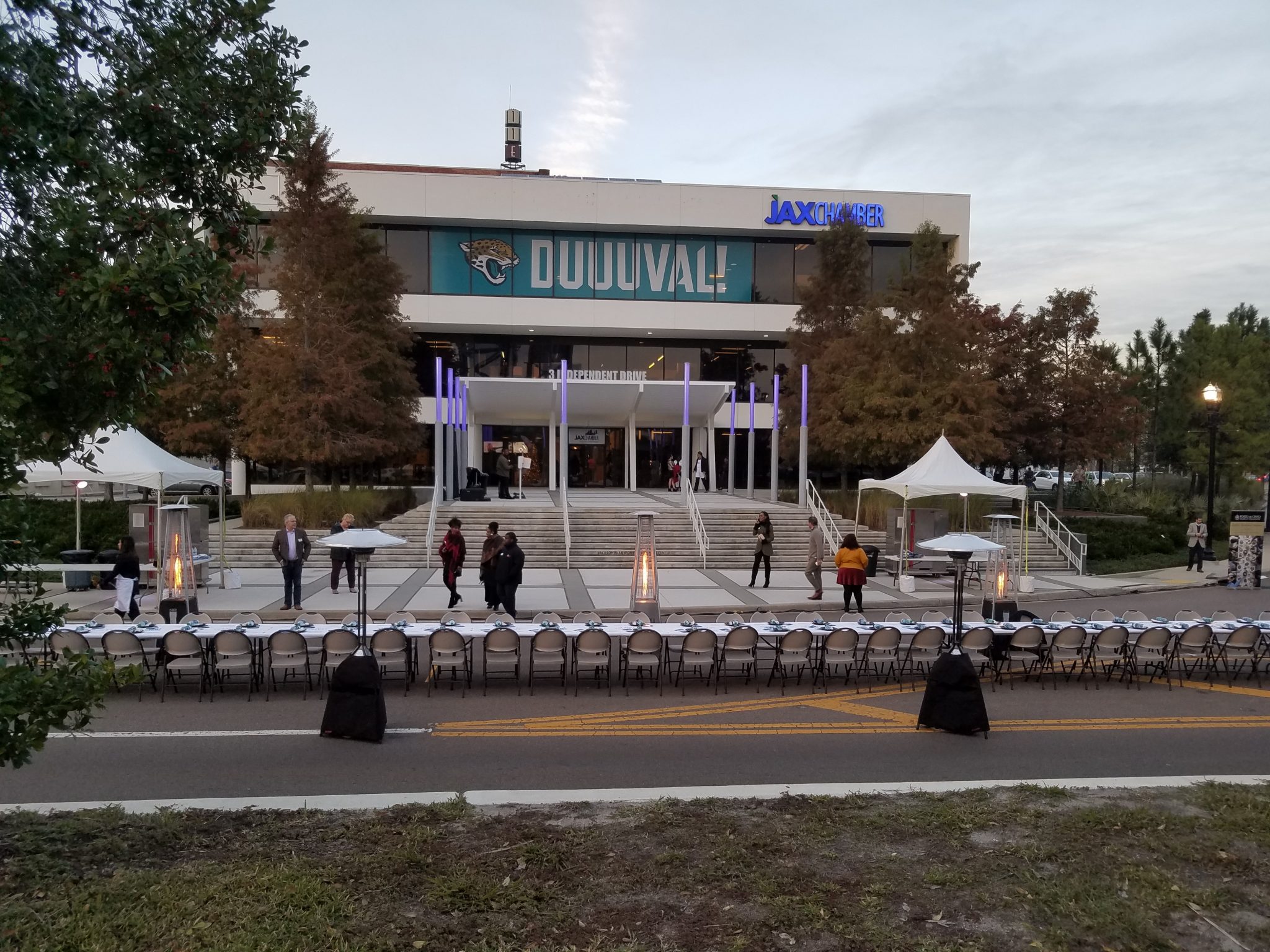 For the third year now, the City of Jacksonville and the Jax Chamber of Commerce has hosted “Jacksonville’s Longest Table,” an outdoor dinner event stretching from Main St, just in front of The Landing down Independent Drive to Newnan St, almost in front of the Hyatt Regency. Jacksonville’s Longest Table took place the last Thursday of November. It’s an event meant to bring people together from all parts of Jacksonville and from all sorts of backgrounds to share a meal and get to know each other.