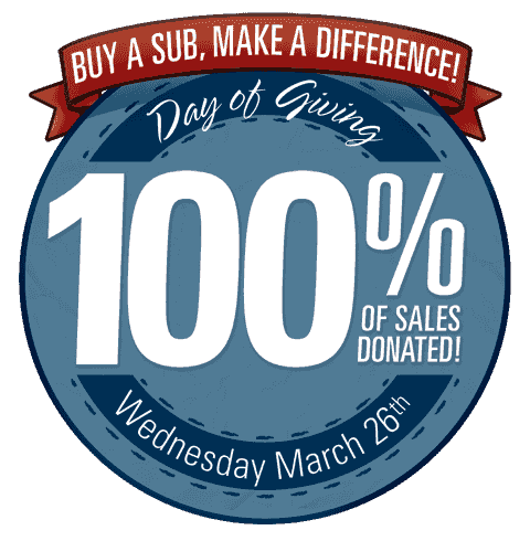 Day-of-Giving-Logo-2014 Published March 26, 2014 at 480 × 490 in Jersey Mike’s Subs – 100% of Sales to Local Charity ← Previous Next →