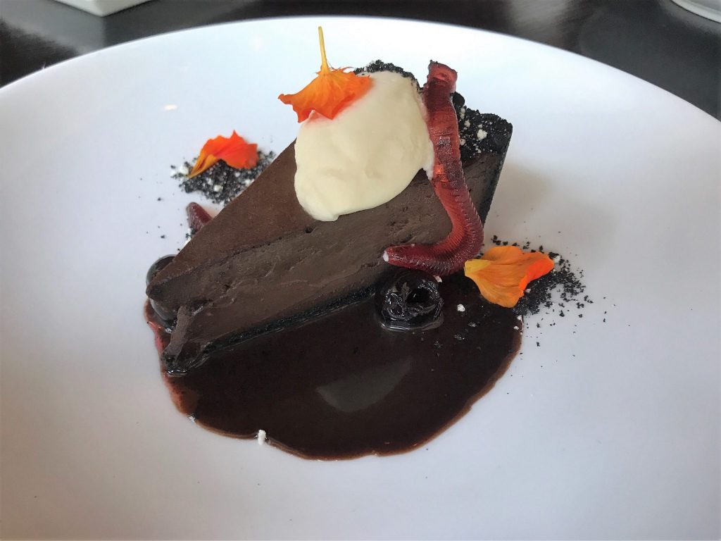 Chocolate Custard Mud Pie (filthy cherry gummy worm, chocolate soil, creme fraiche whip): This slice is just the right size to finish up after a big meal. While it is a bit rich the portion size allows you to dig in without feeling miserable afterward. A smooth chocolate cake meets up with cookie crumbles, cherries and gummy worms made in house. Simple and delicious.
