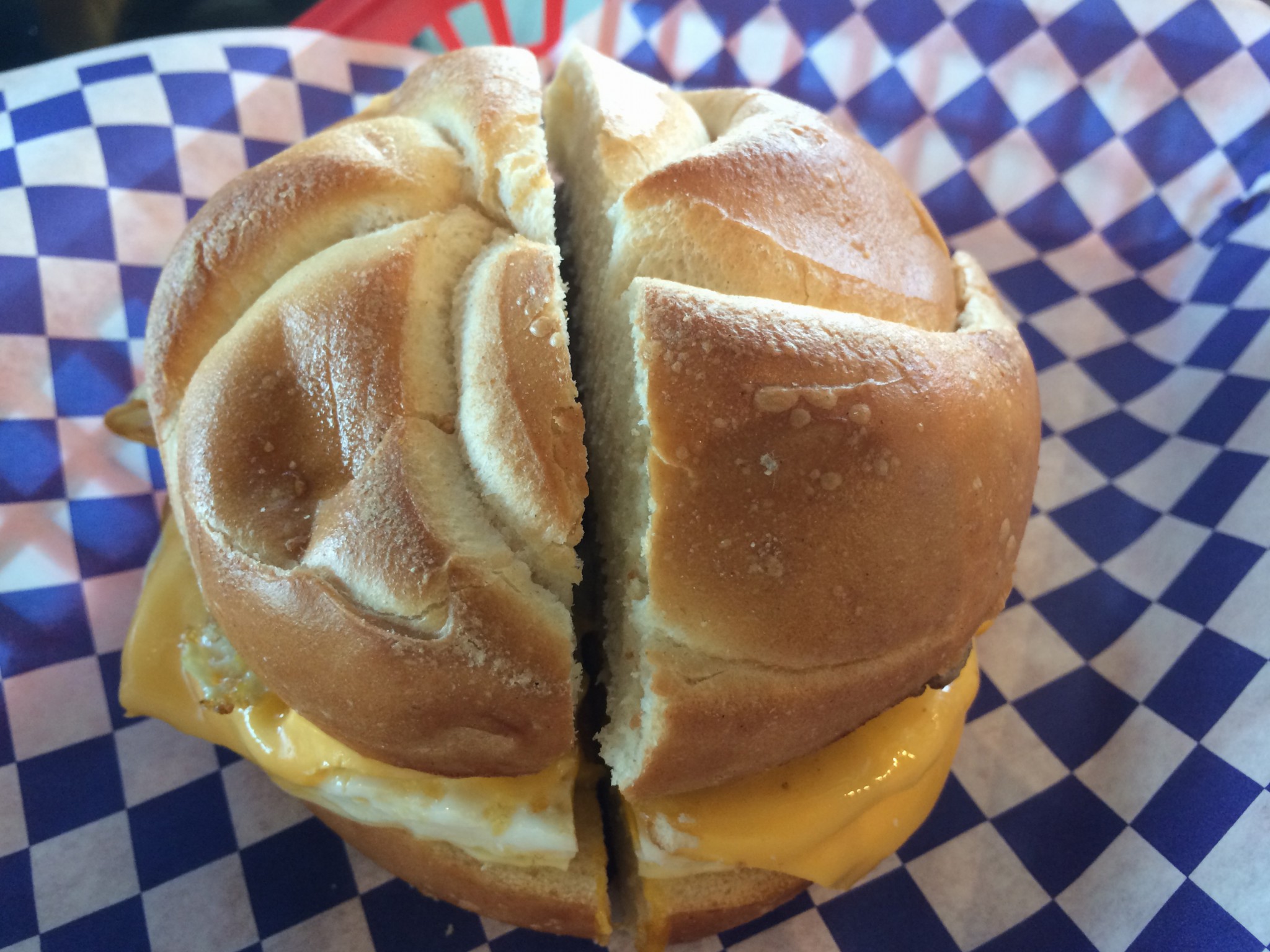 So you know it’s a good business, but is the food any good? On our visit we tried the Meat Lovers breakfast sandwich (two eggs with your choice of meat and American cheese, $4.49), the Lifeguard Hero (corned beef, pastrami, Swiss, slaw, Russian dressing, toasted garlic bread, $6.49), and the Survivor Hero (hummus, avocado spread, lettuce, tomato, spinach, feta cheese, $6.99), and a side of quinoa salad. The breakfast sandwich was made to order and served on a round roll. It was exactly what the menu stated and it was good enough that our son ordered and ate an entire second sandwich. The bread was great – nicely toasted and fresh. The sausage and egg and American cheese all got the job done.