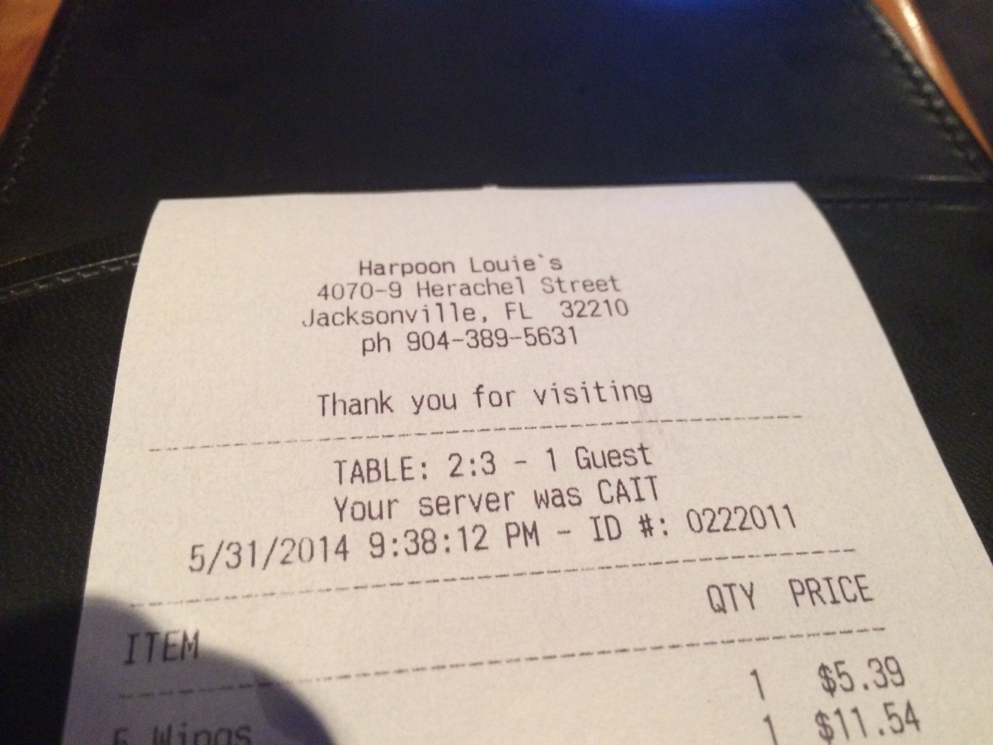 For today’s restaurant trip we stopped in at Harpoon Louie’s in Avondale. Harpoon Louie’s bills itself as an American pub and grill. Harpoon Louie’s prides itself on offering a number of locally sourced options from their weekend specials made with items from the Jacksonville Farmer’s Market to the wide selection of local beers. Harpoon Louie’s burger was ranked best in Jax by the Florida Times Union reader’s poll in 2012.