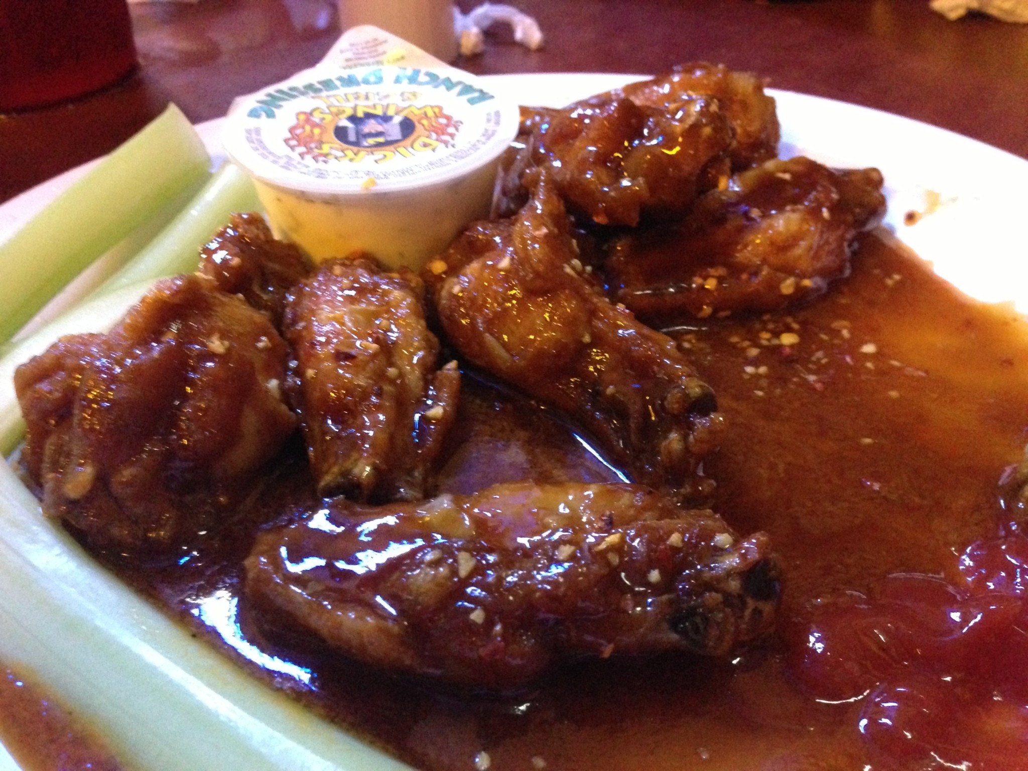Food: We led off with the fried pickles ($4.99). Dick’s fried pickles are cut thinly into pickle chips. They are crispy and delicious with just the right amount of breading. Dick’s are my favorite fried pickles in Jax so far. We tried two types of wings. First we started with something basic. Medium buffalo wings. These were decent with good flavor and a bit of a peppery kick. I’m not normally a huge fan of peppery flavor but I enjoyed these. The 2nd style of wings we tried were Georgia girl flavor-“Our own special blend of Bourbon, Teriyaki, and Garlic pepper”. These tasted a lot like Bourbon chicken you’d get from The Big Easy Cajun restaurant at the malls but with a bit of peppery kick. They were good but the sauce was a bit stickier and heavier than a standard buffalo wing sauce. The sauce a lot of people love at Dick’s is the Cajun ranch. It has a rich blend of Cajun flavoring and ranch and is very heavy. People absolutely love it. It’s too heavy for me. Then again I’m a bit of a purist when it comes to wings and most sauces just take away from the experience for me. The wings come with waffle fries or potato wedges. Both are good options. We went with the waffle fries. They were crispy salted enough but not too much and cooked correctly. As far as how their mild medium and hot wings run: I would go with mild if you want no spice at all. Medium if you want some kick but not super spicy. Hot if you want pretty spicy to burn your mouth a bit. For those of you who like to set your mouth on fire you can venture into Great balls of fire or Swamp fever. !0 wings will run you $10.99