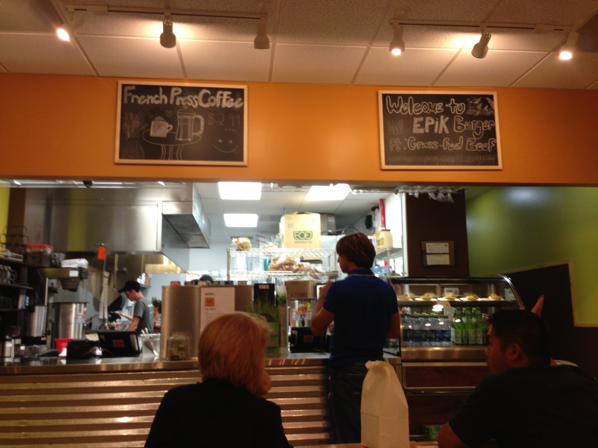 Food: On this trip I ordered the Greek burger-Feta cheese, kalamata olives, lettuce, tomato and olive oil mayo. You can’t have a burger without fries so I added some sweet potato fries to go with it. The Greek burger was delicious. The mild taste of the feta was complemented nicely by a strong but not overpowering olive flavor. The bun really made the burger with a slightly sweet flavor and softness pairing perfectly with the slightly salty and vinegary flavor of the kalamatas. This was a really great burger. The sweet potato fries were outstanding. They weren’t greasy at all and had a nice balance of sweet and salty. Lastly I tried the hand battered onion rings. As I waited for my food to be made I could actually see them hand dipping them in batter and then placing them in the fryer. These ended up being just okay in my opinion. They were slightly saltier than I would normally like and they were also really greasy. They didn’t have bad flavor and if I was really in an onion ring mood I might order them again; but, I’d really have to be in the right mood for them. In my experience with coming to epik burger they almost never do a bad burger. I’ve also heard great things about the chicken and ahi tuna sandwiches from everyone who’s tried them.
