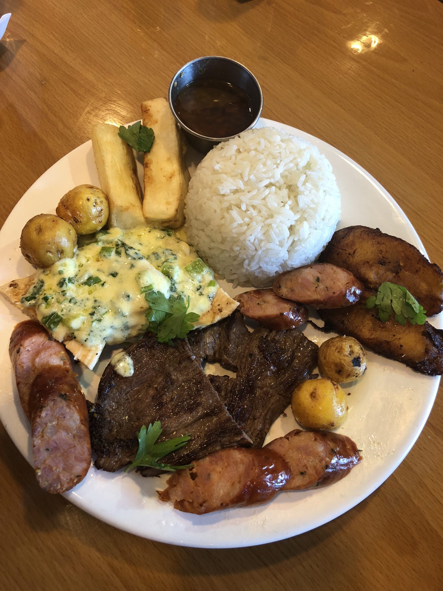 We also tried the Pollo al Verdeo (chicken breast with a green onion creamy sauce) and Churrasco steak (grilled skirt steak with Argentinian chimichurri) and rice and beans. The chicken melted in my mouth as I ate it. My guest made a great point that it wasn’t overly cheesy or oniony which can sometimes overpower the meat. The steak was cooked and seasoned well, but the real star of that dish was the homemade Argentinian chimichurri. I began dipping everything in the chimichurri. It was that good.