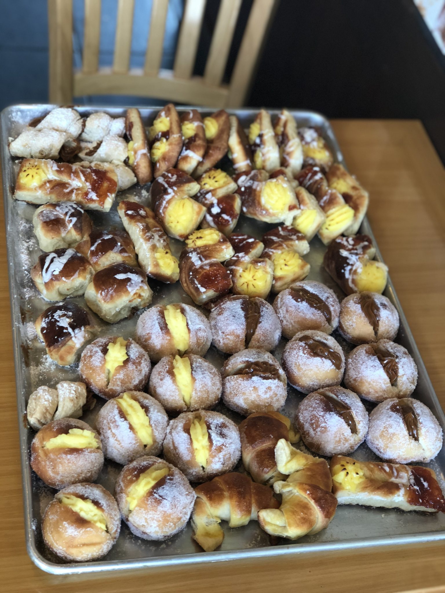 When I first walked into Empanada’s Factory, I immediately noticed the vibrant artwork on the walls, I heard chatter and laughing, and I smelled heavenly baked goodness that basically had me instantly drooling. I of course peeped a large tray of pastries as well, which I’ll get to later (my sweet tooth is out of control).