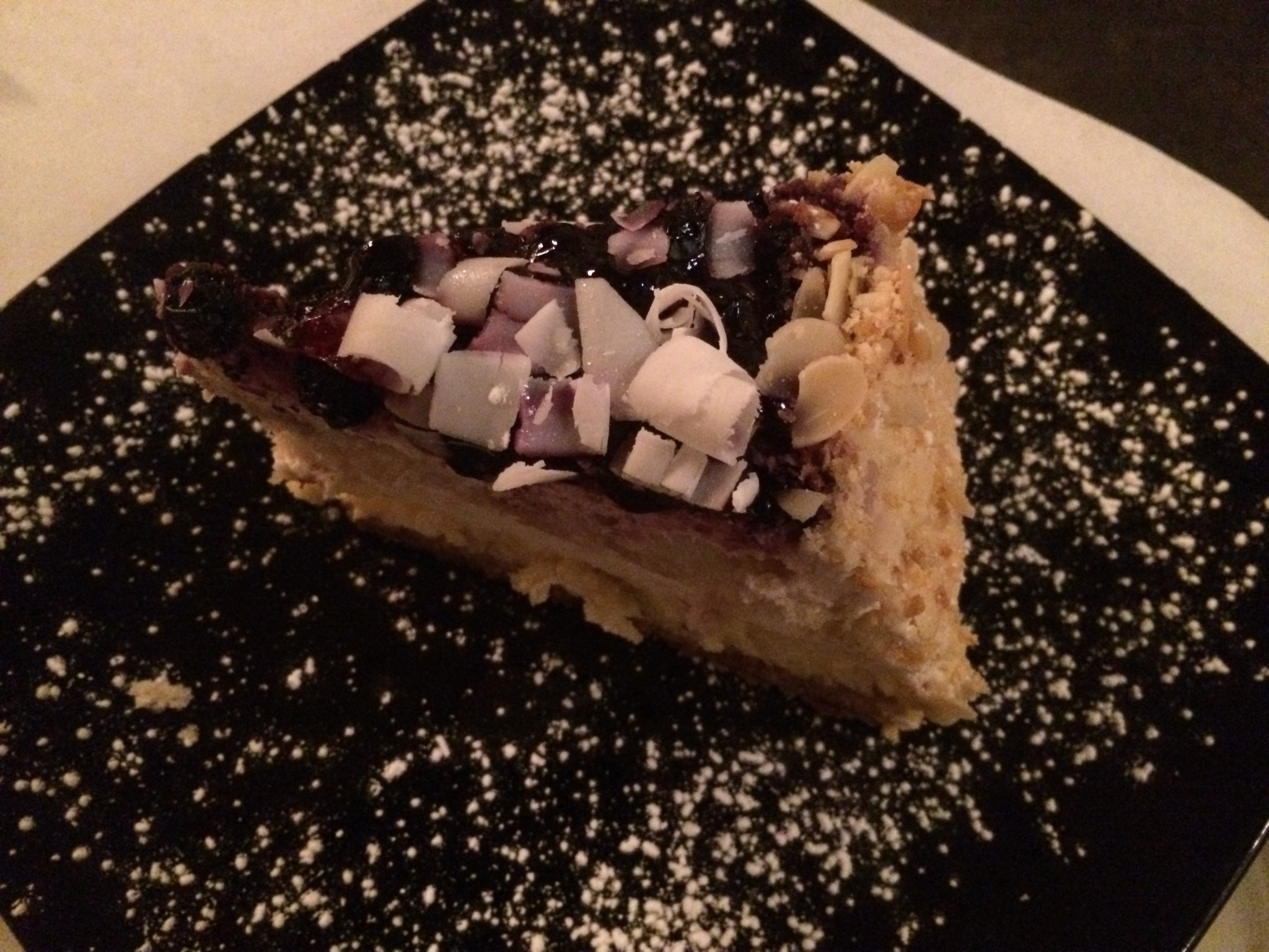 Desserts are where JJ’s Bistro de Paris really shines. There must be 40 different dessert options. We were pretty full but we couldn’t help but tackle a dessert or two. The first was a white chocolate orange liqueur truffle. This one tasted just like those chocolate oranges that come in the foil wrapper around Christmas time, where you peel out and eat chocolate wedge but more rich……a lot more rich. We liked it. It was a fun sort of dessert that was just the right size for when you’re really full after dinner but can’t stop yourself from dessert. The second dessert we tried was the blueberry cheesecake. It was rich, creamy, and pretty darn sweet. It was OH SO DELICIOUS!!!! Man was it good! It really had a flavor and texture that was half way between typical cake and cheesecake. I can’t get over how much I loved it. If you have a huge a sweet tooth and love blueberries this is your cake.