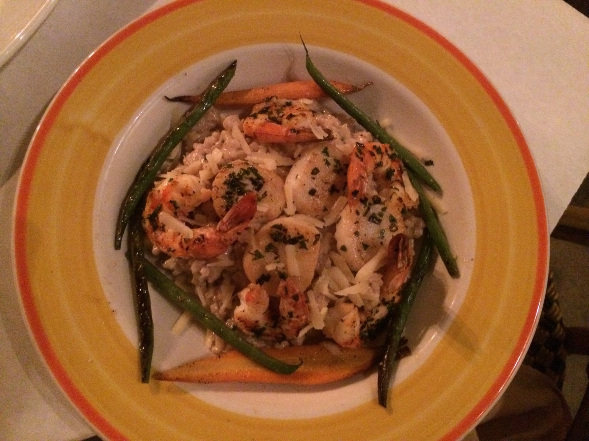 Our meals came with a small dinner salad. Unfortunately when it arrived the lettuce was a bit wilted which was really disappointing given the high price of dinner at JJ’s Bistro de Paris. For entrees we ordered the confit de canard($27)- Crispy seared duck confit served with port wine reduction and pommes frites and the risotto aux crustaces($28)- Sautéed shrimp and scallops in a hazelnut cream sauce with savory risotto. The duck confit was limp and could even be described as mushy to some degree. The menu specifically states “crispy seared duck”. The skin wasn’t at all crispy. Crispy skin “makes” duck dishes for me. When you tell me it will come out crispy on the menu I get excited. But, when I pay a price that is among the most expensive in town for duck and I get a horrible entrée I’m doubly irritated. The French fries were nice and crisp. That was a plus. I’d hope that at a fine dining establishment they could get French fries right. The risotto was very very firm….too firm. The scallops weren’t cooked well. They were rubbery and chewy. Red Lobster could cook better scallops than this in their sleep. When you go to a fine dining restaurant you expect fine dining quality and attention to detail. You’re paying a lot more for the expertise of the chef to shine through in the product delivered to your table. These entrees were anything but fine dining quality.