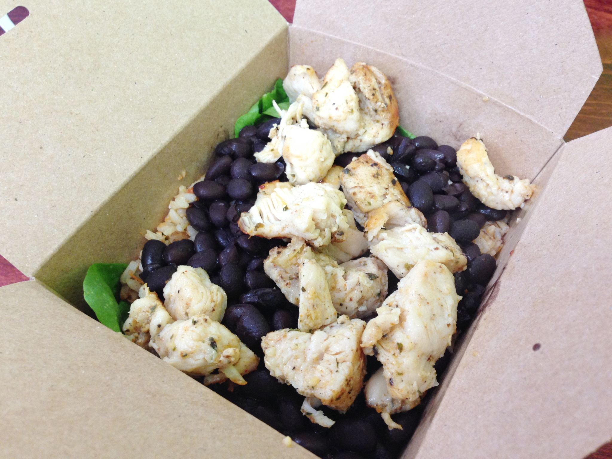 We recently stopped in for lunch and the first thing I noticed was how appetizing it smelled.  The place was filled with the smell of meat sizzling on the grill, plus the unmistakable scent of black beans and rice.  I was so excited to order.  There was a short line, so I looked over the menu while I waited.  They have a really large menu, and by large I mean huge, filling up most of the wall behind the bar.  It is printed on big chalkboards and is very well laid-out and easy to read.  It made it easy to pinpoint exactly what I wanted.  The hardest part of choosing was that everything sounded so good.  The menu includes wraps, bowls, smoothies, and fresh juices that are all customizable to an almost endless degree.  They really encourage you to build your own healthy meal, choosing from a wide variety of fresh ingredients.  In addition, they have a Latin menu that looks incredible, featuring several authentic Latin dishes with a healthy twist.