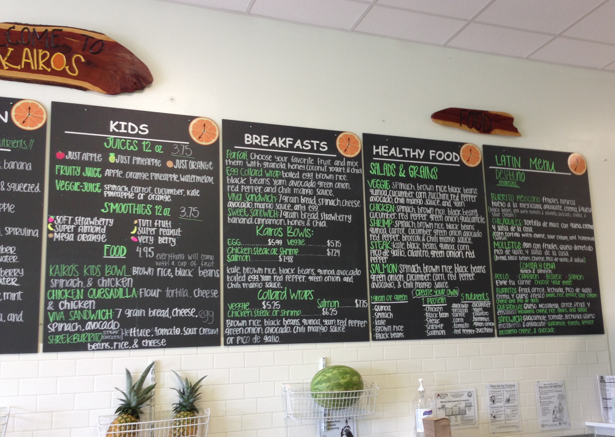 What used to be just a juice bar has now grown into a nutrition destination.  The Kairos menu is full of healthy options, some of which have a fun Latin flair to them.  It’s a little different than your typical smoothie place…in a very good way.  The food and smoothies are fresh and flavorful and leave you feeling full and satisfied, not like you just forced yourself to eat something healthy.