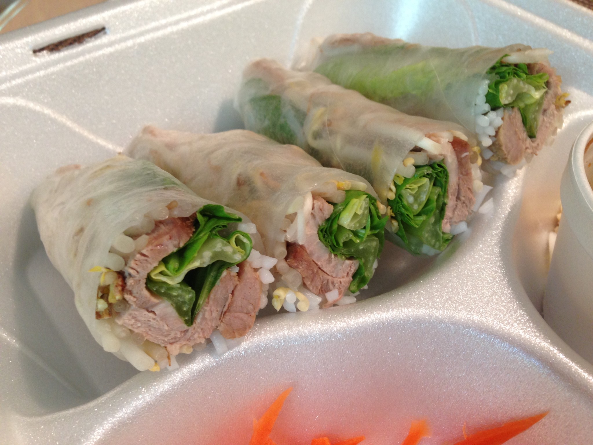 We decided to try the Coffee Milk Tea with boba ($3.75 for a medium size) and a Chocolate Smoothie with boba ($4.45 for a medium size).  We also got an order of Grilled Pork Spring Rolls ($4.95) to snack on.  We placed our order to go and then had a seat while we waited.  The wait ended up being a little longer than I’d hoped, especially for a to-go order.  But like I said…there was plenty to look at and keep us entertained, so the kids didn’t complain too much.  The lollipops they gave us also helped.