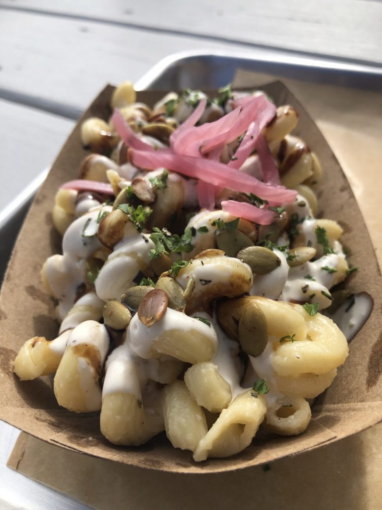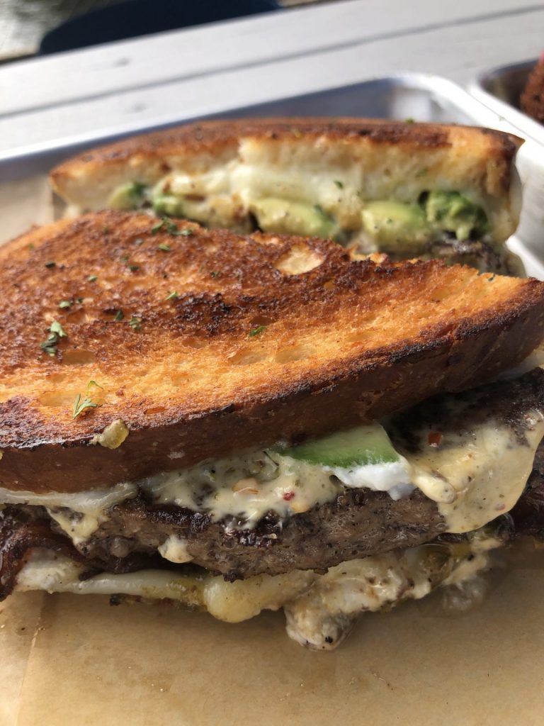 To give myself a reprieve from the new new, I started to devour The Freddy. This sandwich is a regular customer’s original order that made its way onto the menu. It is a burger melt elevated to another level. The patty is a brisket, short rib, and chuck blend topped with applewood bacon, avocado, provolone, goat cheese, Funk Sauce, and pepper jelly on asiago cheddar cheese bread. What a mouth full. Literally and figuratively. This was decadent, heavy, cheesy, greasy (in a good way), and damn good. I also ordered it with the side of pasta. Now, maybe it’s because I’ve had their pasta before, but if I had to choose a least favorite, I would have passed on it. It’s slightly sweet because of the balsamic drizzle, which was a nice change up to the heaviness from the sandwich. I should have ordered the beet fries though, apparently, they’re amazing. Overall, The Freddy is a hit, but maybe try the beet fries. But if you’re looking for something other than seafood, this would be it.