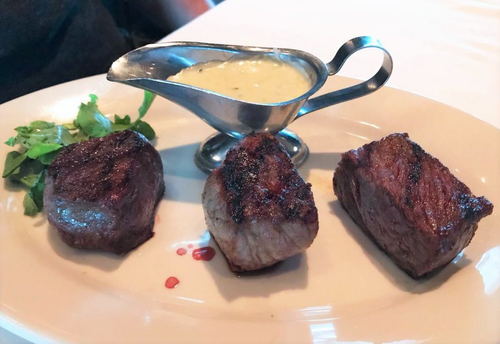 For our entrees we went with two unique menu items: a mixed grill and the piece de resistance, a steak flight. Yes, really! A flight of almost anything is an excellent way to experience it, and the flight of steaks is no different. The three steaks are served with bleu cheese fondue for dipping and topping. They are all New York strip: Certified Angus New York Strip, Prime New York Strip, and American Wagyu New York Strip. You really need to eat the steaks in order or you’ll ruin yourself for them. If you start with the American Wagyu you won’t enjoy the Certified Angus or the Prime nearly as much. If you go in order it will just keep getting better. Morton’s has always been known for their steaks and this dish lived up to our experiences at Morton’s in Chicago. If you’re in the mood for a great steak you can’t go wrong at Morton’s.