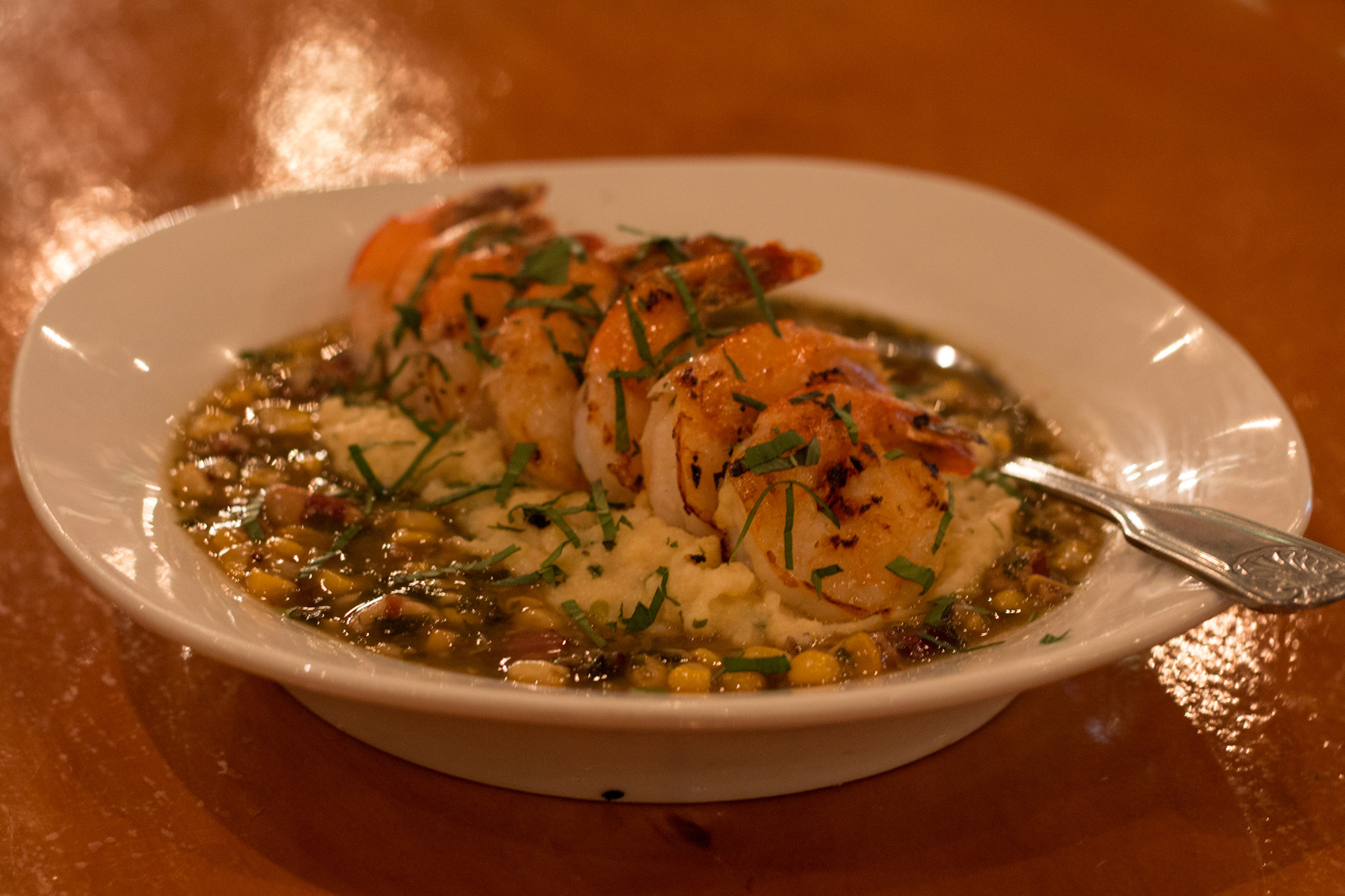 Local Mayport shrimp: ($13) Creamy and sweet polenta is the base of this spin on a traditional shrimp and grits topped with a “gravy” of blistered tomatoes, pancetta, sweet corn, and basil veloute.  This is a full entree size versus the tapas sizes of the other dishes.  Six tender Mayport shrimp are perched in the polenta so that each bite has every layer of ingredients.  This dish came off a touch too herbal for me personally, but for those who want a unique spin on traditional shrimp and grits, this is for you.