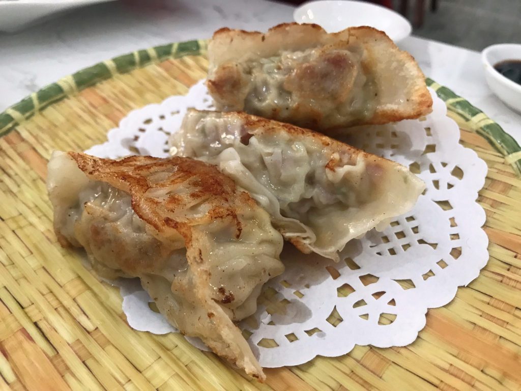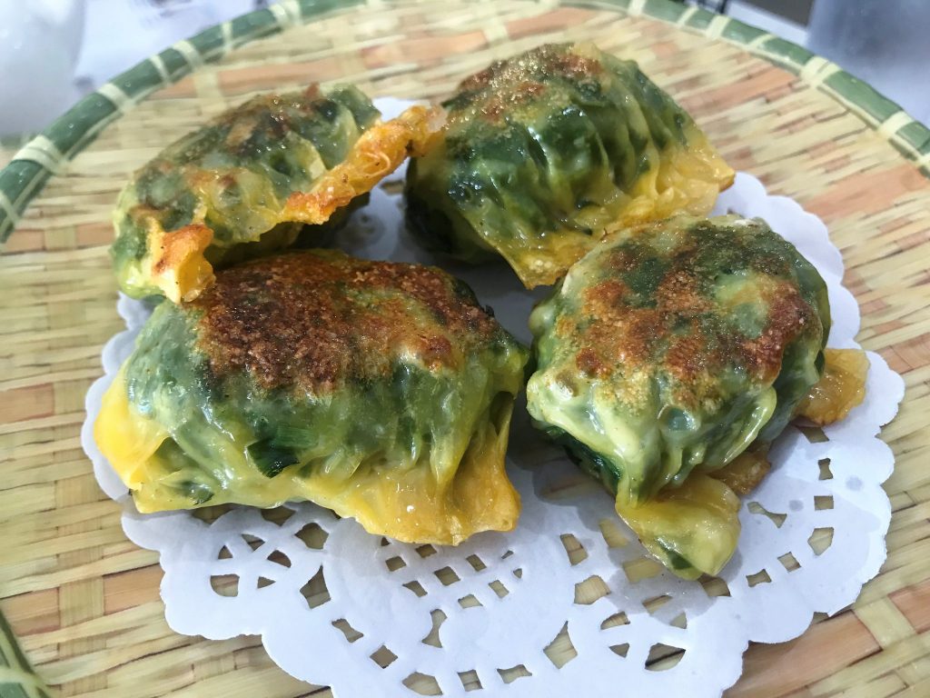 Fried Chive & Shrimp Dumpling– Similar in shape to gyoza, you must like chives to enjoy these dumplings. They have tons of chopped chives inside with shrimp before being fried.
