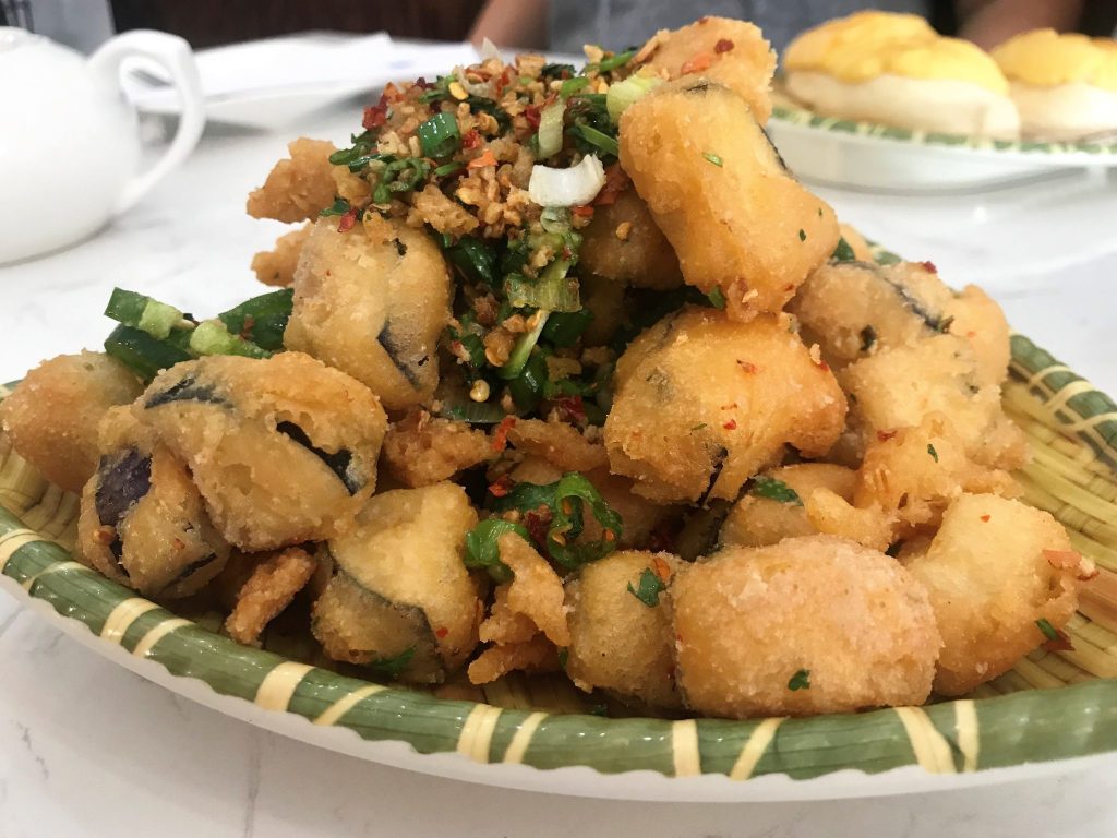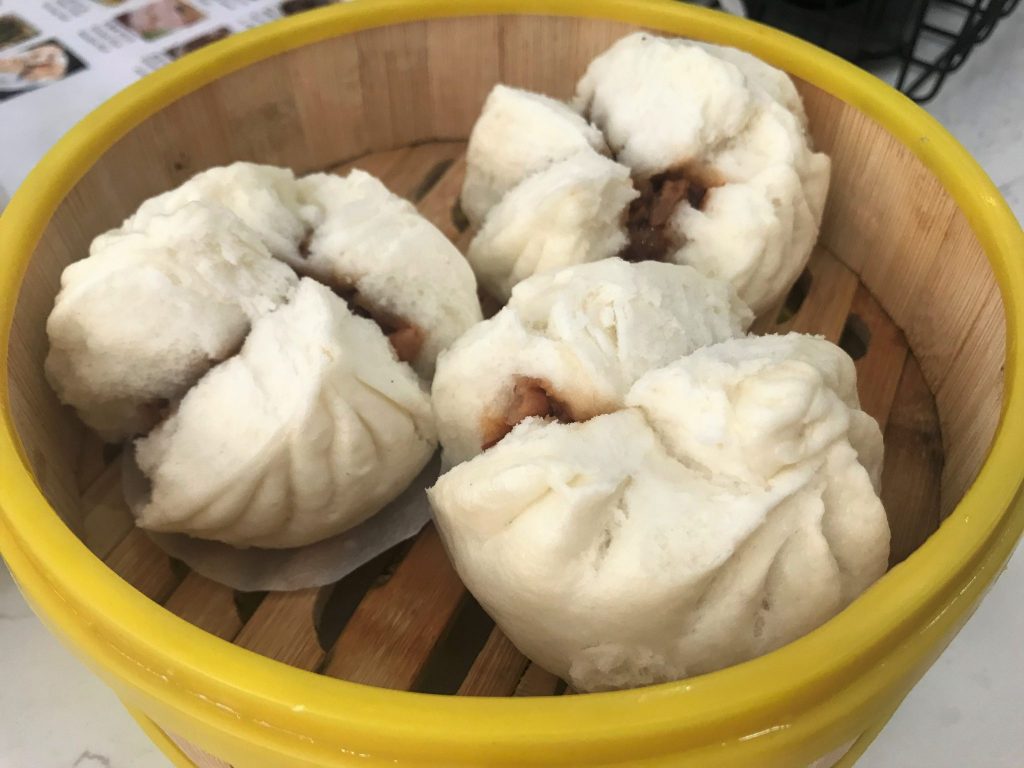 Steam Roast Pork Buns– Steamed pork buns are the first dim sum item I usually recommend to a newbie. They are soft and carby and filled with sweet-salty pork. These did not disappoint.
