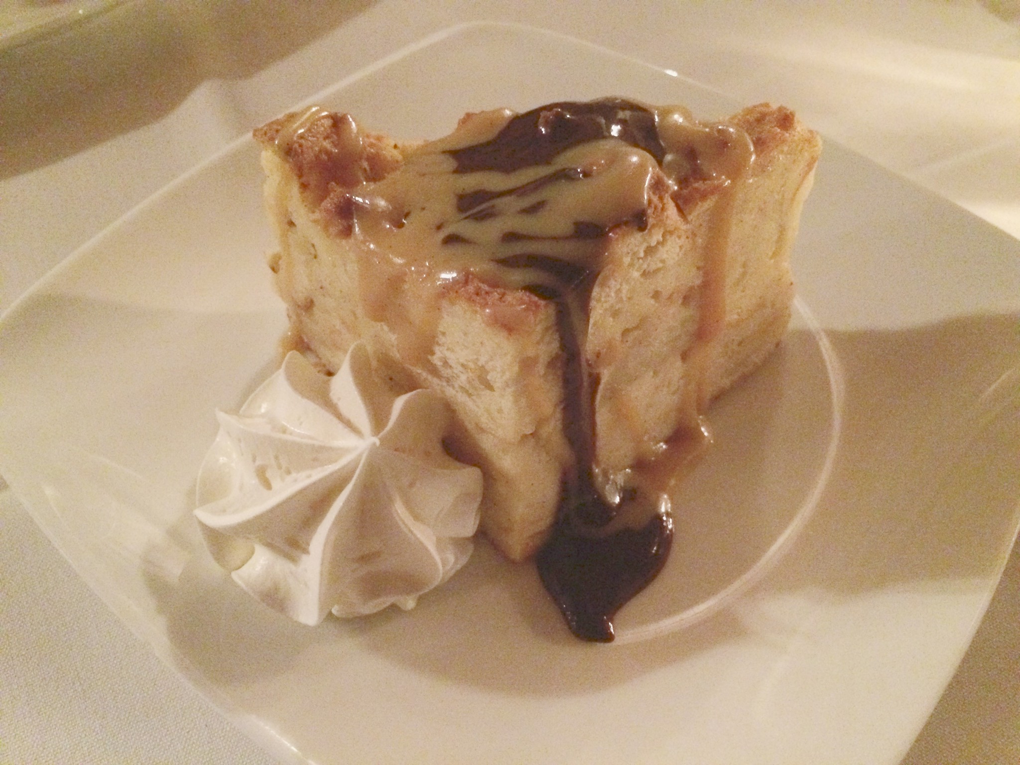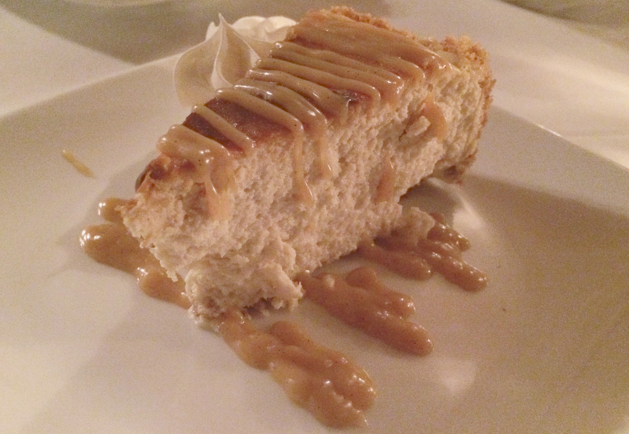 For dessert we tried the cheesecake of the day, which was cinnamon apple, and bread pudding. We should have stopped somewhere on the way home for dessert. The cinnamon apple cheesecake was okay. It wasn’t good enough to order again in any flavor, because the cheesecake itself was just okay. The bread pudding was awful as bread pudding. The bread pudding was perfectly square and even like a slice of cake. It tasted like cake. When a diner thinks of bread pudding they think lumpy and spongy with bits of bread and pools of sweetness. This was quite simply cake and it wasn’t particularly moist at that.