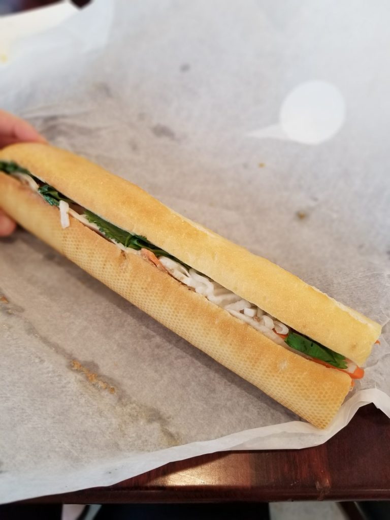 Lastly, we finished the trek through our culinary journey with two bahn mi sandwiches. We received the B1. Special Combination ($6.50) and B2. Grilled Pork ($6.25). Both sandwiches were stuffed with cucumbers, pickled carrots, pickled white radish, jalapenos, cilantro, and a special sauce all hugged by a flawless baguette. This is where the Vietnamese and French love affair was melded together. During WWII, the French brought their signature baguettes to Vietnam, where it was a harmonious blend of the two cultures. The baguette provided a crunchy strong outside but soft and chewy inside, perfect for the bahn mi filling.